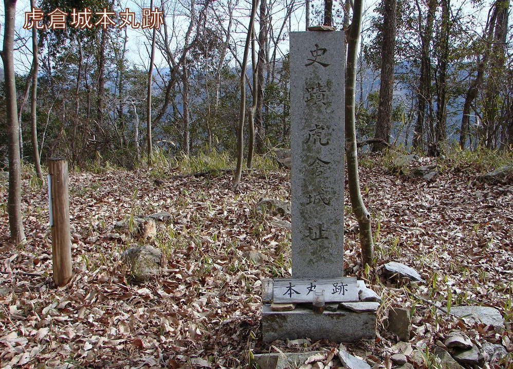 | 段状の郭・石積・空堀・堀切の遺構が残る虎倉城跡 |