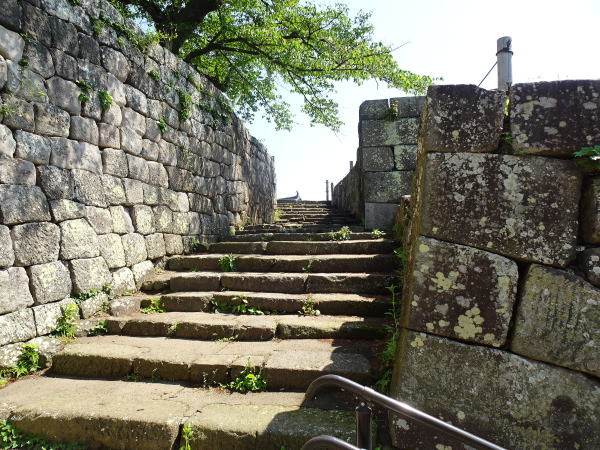 ![]() 桜之門東側(右)の石垣 右奥の通路を上がって行くと、前御門、三重櫓に行きます。 |