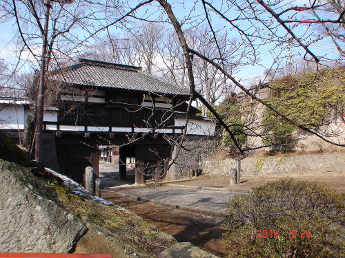 ![]() ▲懐古園入口に建つ三の門(櫓門)〜寄棟造りの二層の城門。「懐古園」の大額がかかる |