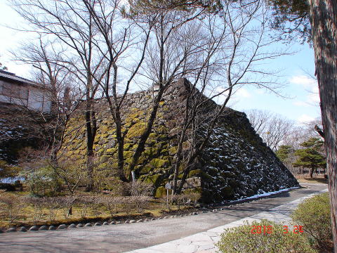 ![]() 本丸を囲む石垣 本丸周囲は石塁で囲まれ、要所には隅櫓が建てられていた。 |