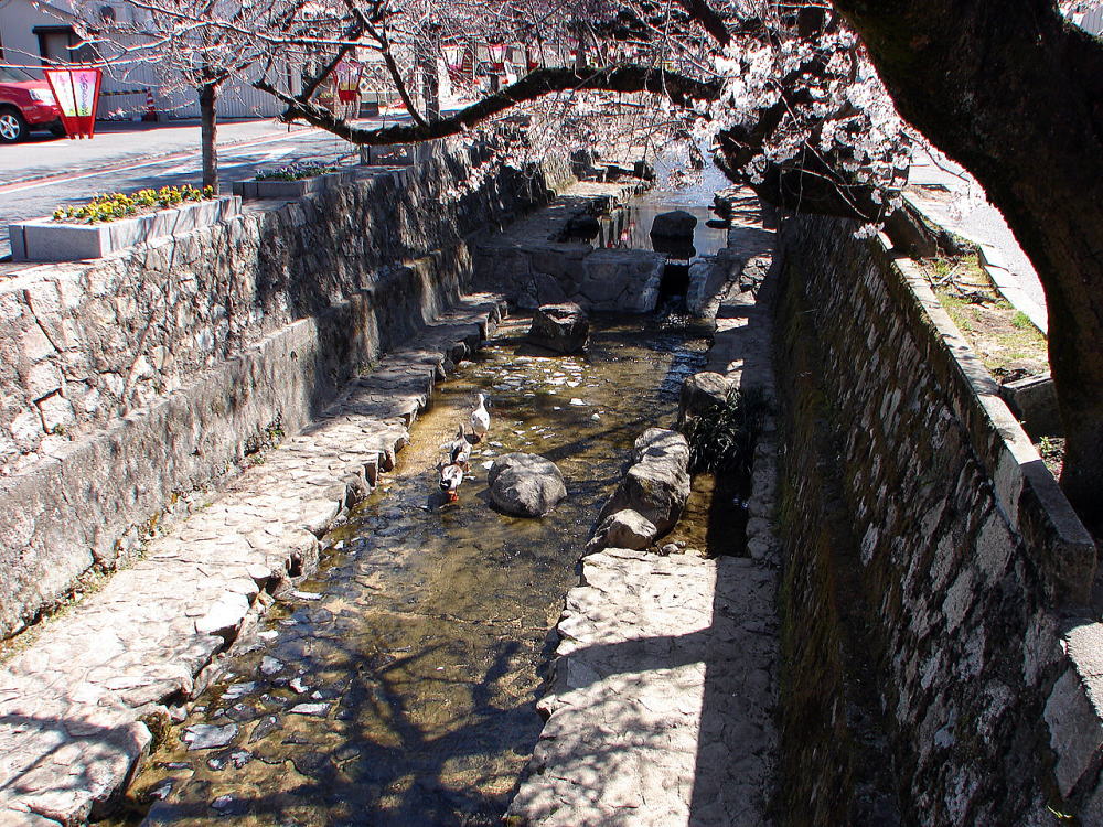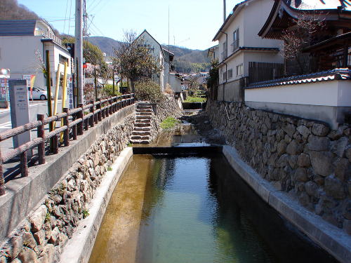 ![]() ■紺屋川 川底両端には、石畳みの遊歩道が続く。 |