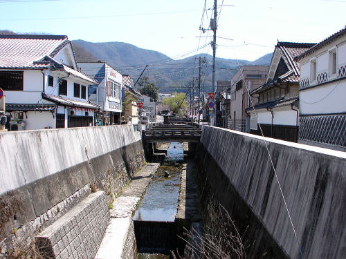 高梁川に流れ込む紺屋川は、かつて備中松山城の外堀の役目を果たしていた。