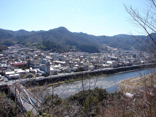 ▲高梁川と高梁市街地。橋は方谷橋。