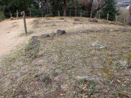 ![]() 伝天守台の建物礎石 昭和57年の発掘調査によって東・西2棟の建物址が検出され、礎石が確認された。 |