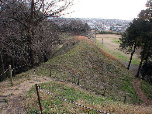 ■大土塁![]() 土塁上から見た大土塁南面。背後は大空堀 |