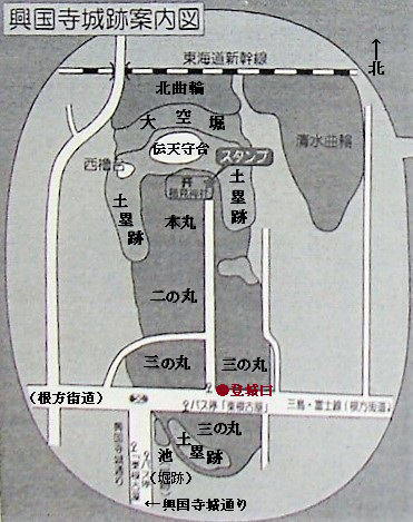 | 興国寺城跡/現況 <2020年1月現在の状況> ![]() (案内図は現地パンフレットより/一部追記) |