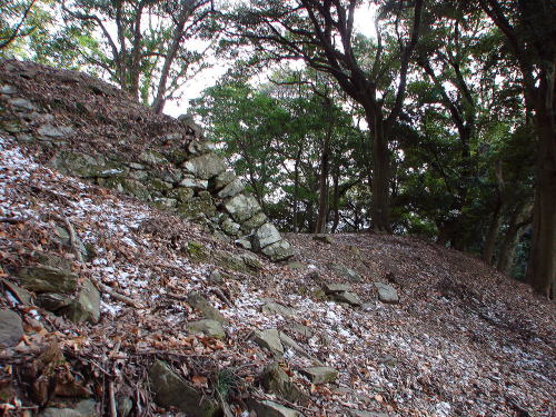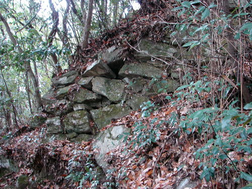 ![]() ▲頂部郭(砦)跡の石垣(西面) |