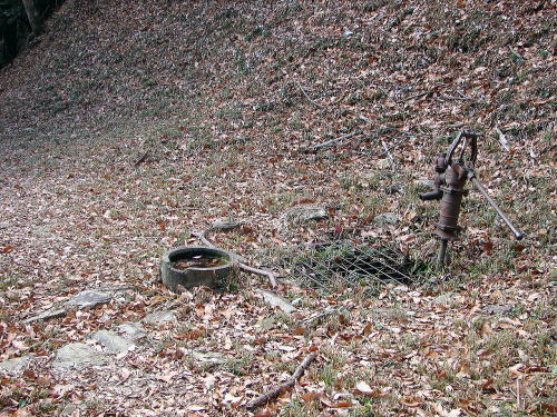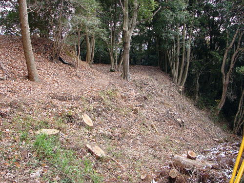 ![]() ▲頂部郭(砦)跡の急崖(東面) 急崖の下は井戸跡。 |