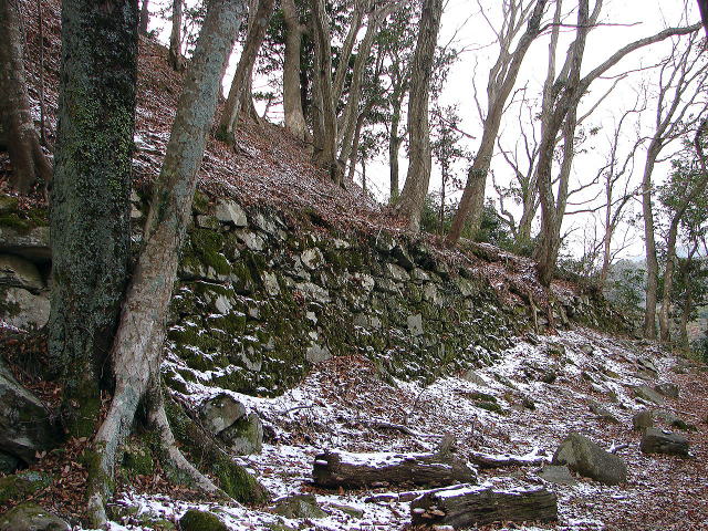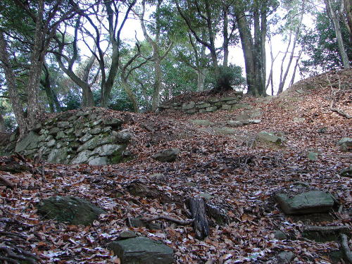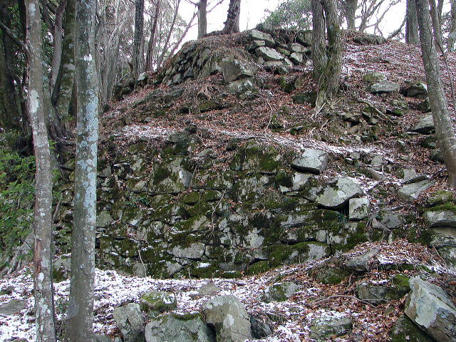 ![]() 最頂部郭跡(南面)に残る石垣 |