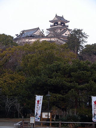 | 【天守】 天守は、現存する全国12城の一つ。大入母屋屋根に望楼を載せた望楼型独立天守。天守の外観は4層だが、構造上は3層6階。 ![]() |