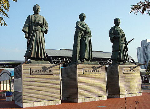 | 【所在地】 高知県高知市丸の内。<写真左>JR高知駅南口にある「高知観光情報発信館とさてらす」に建つ武市半平太像、坂本龍馬像、中岡慎太郎像。<写真右>はりまや橋。※高知駅から高知城まで、徒歩約25分、バス約10分、路面電車約10分(はりまや橋で乗り換え) ![]() ![]() |