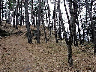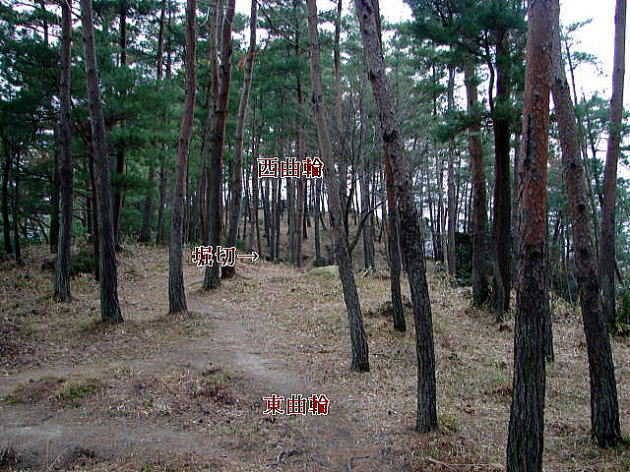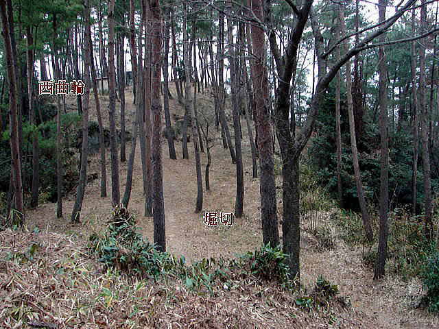 ▼堀切からみる西曲輪跡。一段、高くなっている部分
