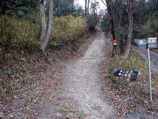 ★印のところから幸山城へ登城しました。下の写真は★印部分の写真です。↑矢印の方向へ進んで行きます。なお、分かりづらいですが左右の道が旧山陽道です。