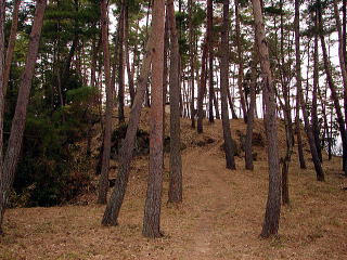 幸山城曲輪跡。この城の縄張は、東の曲輪と西の曲輪とに分かれ、東と西の曲輪の間に大きな堀切がある。堀切は幅30m、深さ4mの大きなものである。