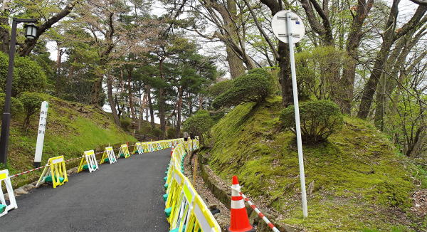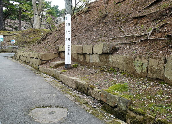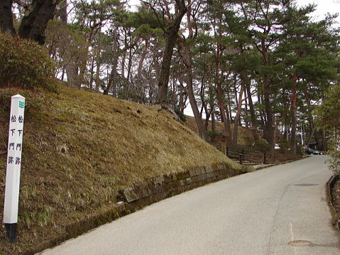![]() 松下門跡 中土橋方面からの二の丸の入口に位置する。藩政時代、正式な登城路は黒門側であったが、土崎、城下町中央部に近い松下門側も大いに利用された。門の周囲の縄張は初代義宣自身が手がけた自慢の設計であったと伝えられる。訪問時、松下門跡のある大坂は融雪設備工事中でした。 ![]() 以前訪問した時の松下門跡の写真です。 <次は黒門跡です> |