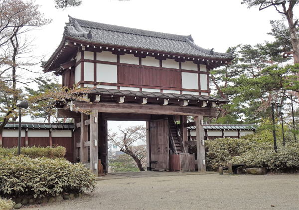 ![]() 表門(久保田城本丸の正門・平成13年再建) 発掘調査や古絵図を元に復元された櫓門。 |