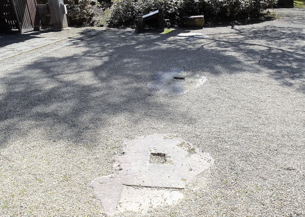 ![]() 裏門跡の柱を支えた礎石 |