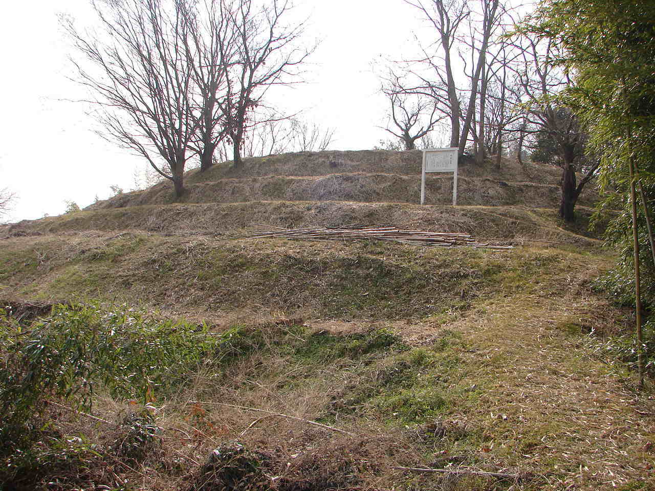 ![]() 前方後円墳の後円部 三段集成であった可能性が強いとされる墳丘の築成をしている。側には解説板が立つ。 |