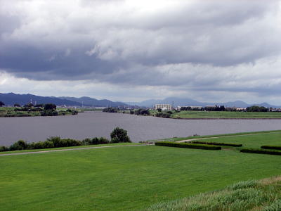 ![]() (左)Cの地点から本丸大手虎口を望む。(右)筑後川。 地域別訪問城に戻る |