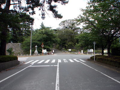 ![]() ▲(左)Aのけやき通り。(右)Bの地点の様子。城へはこの先の信号を左に曲がる。 |