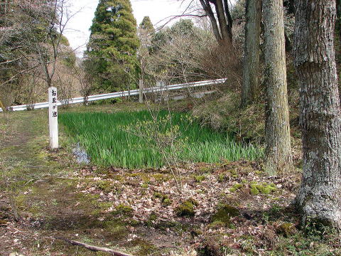 お玉が池久留里城の二之丸は、水源がなく不便な場所でした。城主の里見義堯(さとみよしたか)は、家臣の兵馬に池を掘るように命じました。 ある時、兵馬が池を掘っていると、兵糧庫が焼失する事件が起こり、火の不始末の疑いで、兵馬は捕らわれの身となります。城将小川秀政の娘の「お玉」は、これを哀れんで、かわりに池を掘りはじめますが、兵馬は打ち首となってしまいます。その後、この疑いが解けると、お玉は髪を切り、兵馬を弔ったそうです(城内説明板より) |