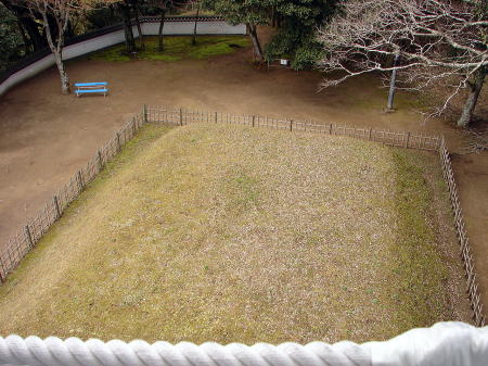![]() 復興天守からみた土壇 |