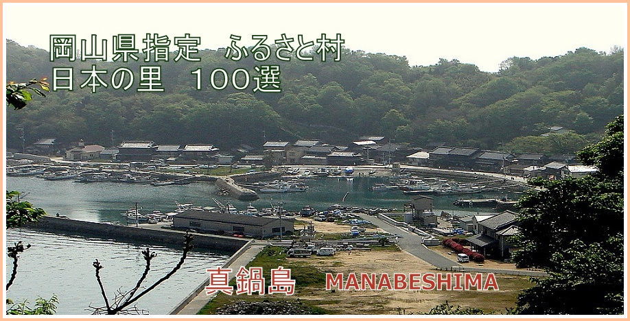 ■真鍋島ふるさと村〜 明治時代から漁村として栄え、当時の漁村特有の家並みが軒を連ねる真鍋島は、その牧歌的な情景が評価を受け、昭和53年に岡山県のふるさと村に指定された。船板を張った家屋や石積みの防波堤などは、古くからの漁村風景を感じさせてくれる。