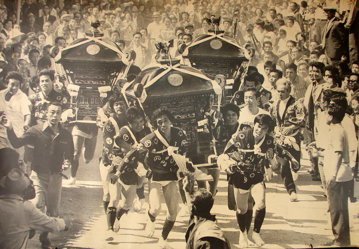 「走り神輿」〜本番は見学できませんでしたので、船着場待合室に掲げられていた写真を掲載します。