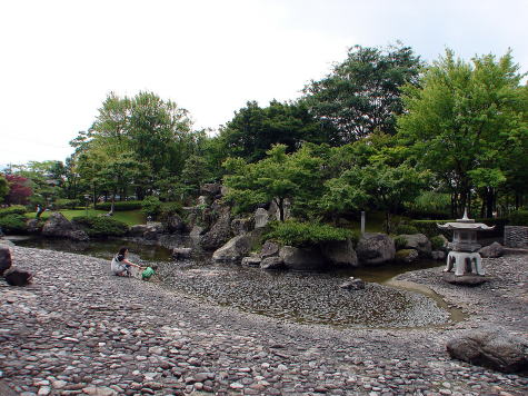 ![]() ▲一筆啓上茶屋 手前は無料の駐車場。茶屋の右側を入ると霞ヶ城公園となり、歴史民族資料館、天守閣への登り口へと至る。 |