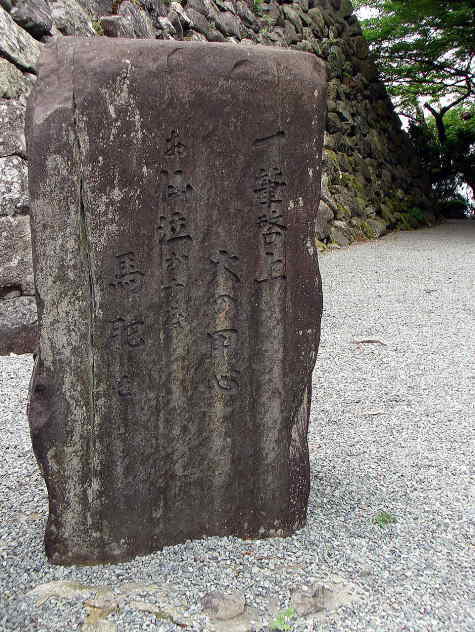 ![]() 【写真上】 天守下にある井戸「雲の井」〜天正3年(1575)織田信長が越前の一向一揆を平定後、伊賀守勝豊が豊原からここに移り築城した。豊原は一向一揆の最後の根拠地であった為、この地に築城後も一揆の残党が攻撃をしかけてくることも、しばしばであった。しかしそのたびごとに、この井戸より大蛇があらわれ、城に“かすみ”をかけて城の危機を救った。この伝統が別名「霞ヶ城」と呼ばれる所以である。 【写真右】 「一筆啓上」書簡碑〜徳川家康譜代第一の功臣で鬼作左の勇名をとどろかせた本多作左衛門重次が陣中から妻にあて「一筆啓上、火の用心、お仙泣かすな、馬肥やせ」と書き送った話は有名である。文中のお仙とは嫡子仙千代で、後の福井城主結城秀康に仕え、数度の戦に武勲を立て丸岡城6代目の城主となった本多成重のことである。この書簡碑は天守閣石垣の東北端に建てられている。 |