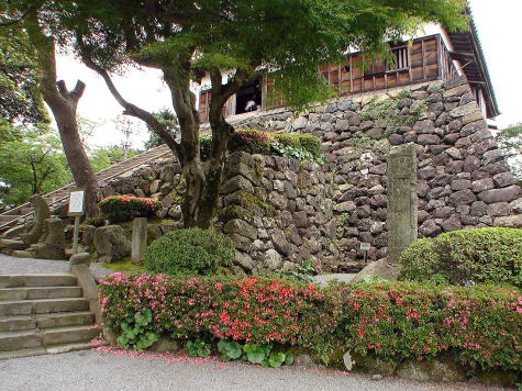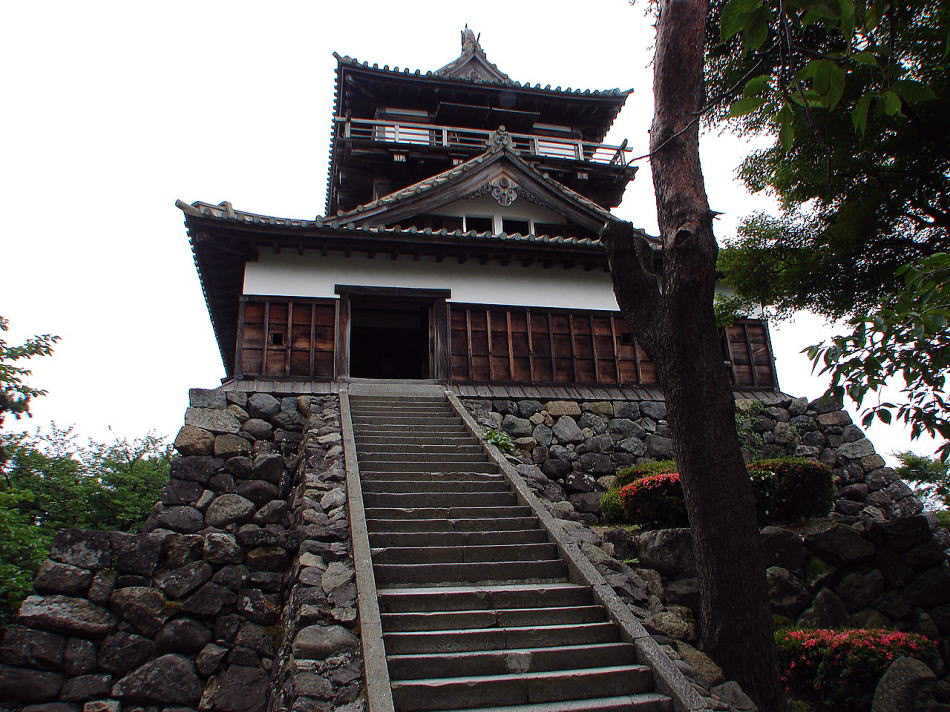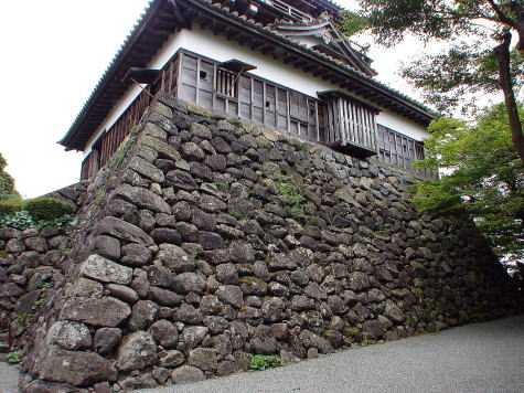 ![]() ▲丸岡城天守(東面) 天守東面に設けられた天守入口と、天守入口への石段。 |