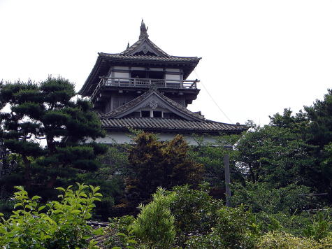 ![]() ▲天守西面 初層の入母屋(いりもや)屋根の上に望楼を載せた形式。3階には天守の初期形態を示すとされる回縁をめぐらす。 |