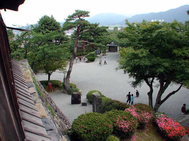 ■本丸跡天守入口から見た本丸跡。ここには、本丸御殿、櫓などがあった。 |