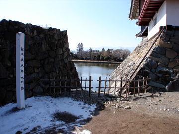 ![]() 松本城北門馬出跡と北門大井戸 北門馬出は、三の丸北東隅に位置し、東門馬出についで松本城第2の規模の馬出。 |