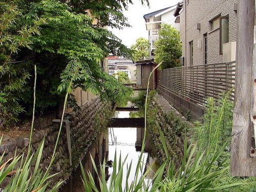 ![]() 堀跡(大手門付近)〜かつての堀の名残りで、この辺りの堀幅は17間(約30m)もあり、その内側には土居(土塁)が築かれていた。現在は水路として痕跡を残すのみである。 |