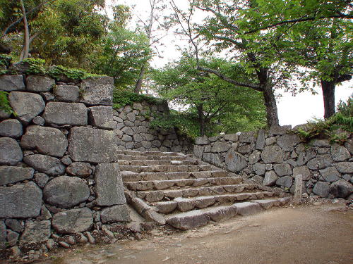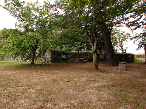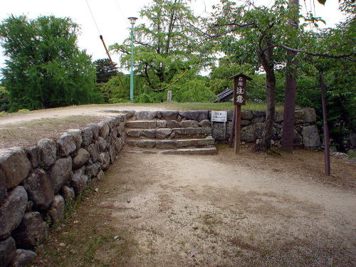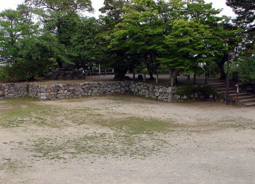 ![]() ▲太鼓櫓跡(正面の石段のある所) 本丸下段の南隅に位置する。左側は多聞跡で、多聞櫓が月見櫓と連結していた。 |