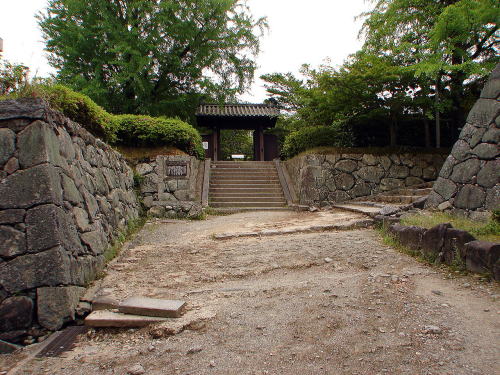 ![]() ▲助左衛門御門跡(表ニノ門) 左側の石垣には遠見櫓、右側の石垣には鐘ノ櫓が建っていた。二ノ丸から本丸下段に通じる御門。 |