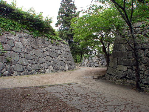 ![]() ▲裏門跡 守りを重視した枡形構造。手前が三ノ丸跡、奥に行くとニノ丸跡。 |
