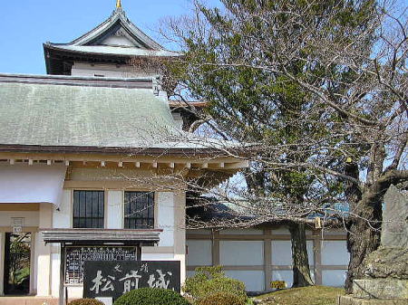 | 慶長11(1606)年に完成した城は、当時これを福山館と称していた。しかし、寛永14(1637)年城中から火を出し、多くの建物を焼失、寛永16年これを修築した。その際、表御殿には京都伏見城の一部が移されたと伝えられている。 明治8年、北海道開拓使の命令により福山城は取り壊されたが、天守と本丸御門、表御殿は残った。 表御殿は松城小学校として充用され、明治33年新校舎が完成した後もこの玄関だけは小学校正面玄関として、昭和57年まで利用されてきた。現在は、本丸御門の側に移築され保存されている。 |