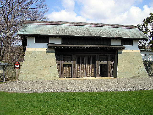 | 福山城(松前城)は、松前町福山の台地に築かれた平山城で、近世に築城された北海道唯一の城郭である。松前家5世慶広が、天正17年(1589)徳山(大館)の居館焼失を機に、慶長5年(1600)福山の地で築城に着手し、同11年(1606)完成した。 蝦夷地の中心として威容を誇ったこの城は、嘉永2年(1849)幕府の命により取り壊され、高崎藩士市川一学の縄張により、直ちに全面的な改築に着手し、安政元年(1854)完成をみた。その後10数年を経ずして、明治維新後の戦乱により廃墟と化し、さらに明治8年(1875)には、天守(三重櫓)・本丸御門・同東塀等を残して取り壊された。昭和16年これら3棟は、国宝に指定されたが、同24年本丸御門を残して他の建物は焼失し、指定を解除された。同25年文化財保護法の施行により、本丸御門は重要文化財に指定された。 本丸御門は、昭和24年に屋根葺替部分修理を行っているが、修理後35年を経て、屋根銅板が磨耗し、雨漏りを生じるようになり、また昭和58年の日本海中部地震により、柱の傾斜等が生じたため、屋根葺替部分修理を実施した。実施に当たっては松前町の直轄工事とし、設計監理を松前町教育委員会文化財課が担当した(文は現地説明板より) |