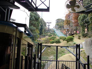 JR予讃線「松山」駅から伊予鉄道(路面電車)「道後温泉行」で約10分「大街道」下車、徒歩約5分で城山ロープウエイ着。約3分で山頂駅。