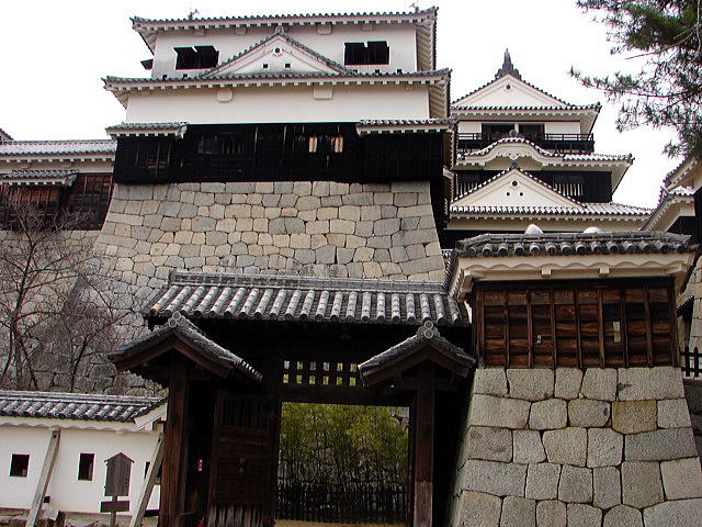 ▼紫竹門背後の小天守と、小天守右奥の天守(重要文化財)