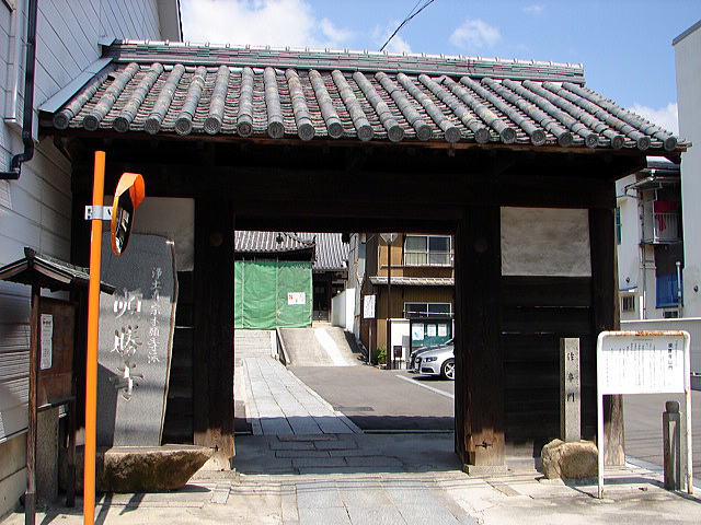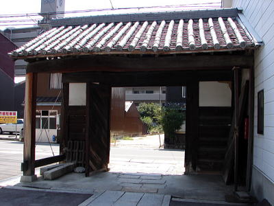 ■三原城の移築門三原市重要文化財 順勝寺山門 <三原市西町> 三原城内にあった御作事奉行所門を、明治10年(1877)に順勝寺(じゅんしょうじ)に移したものである。永禄から天正年間(1558〜92)の作と推定される。 構造形式は、四脚門、切妻造り、本瓦葺き。 |
