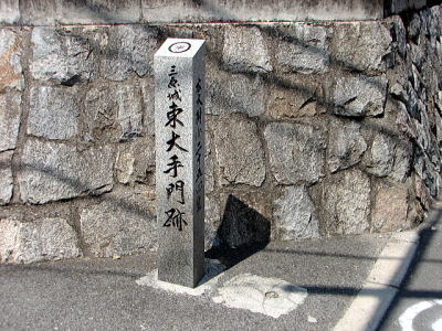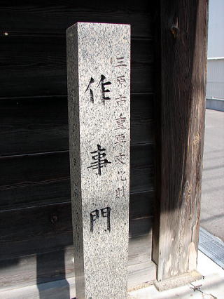 ![]() (上)内側から見た作事門 (右)作事門脇に建つ碑 |