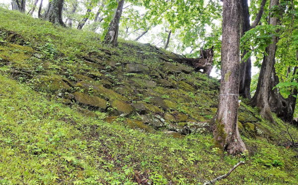 ![]() 本丸裏門外の会津蒲生領時代の石垣 |