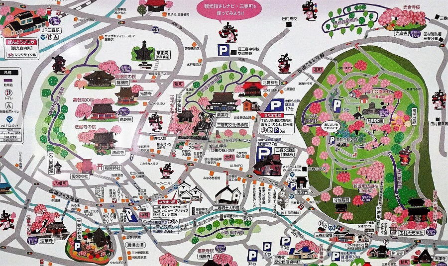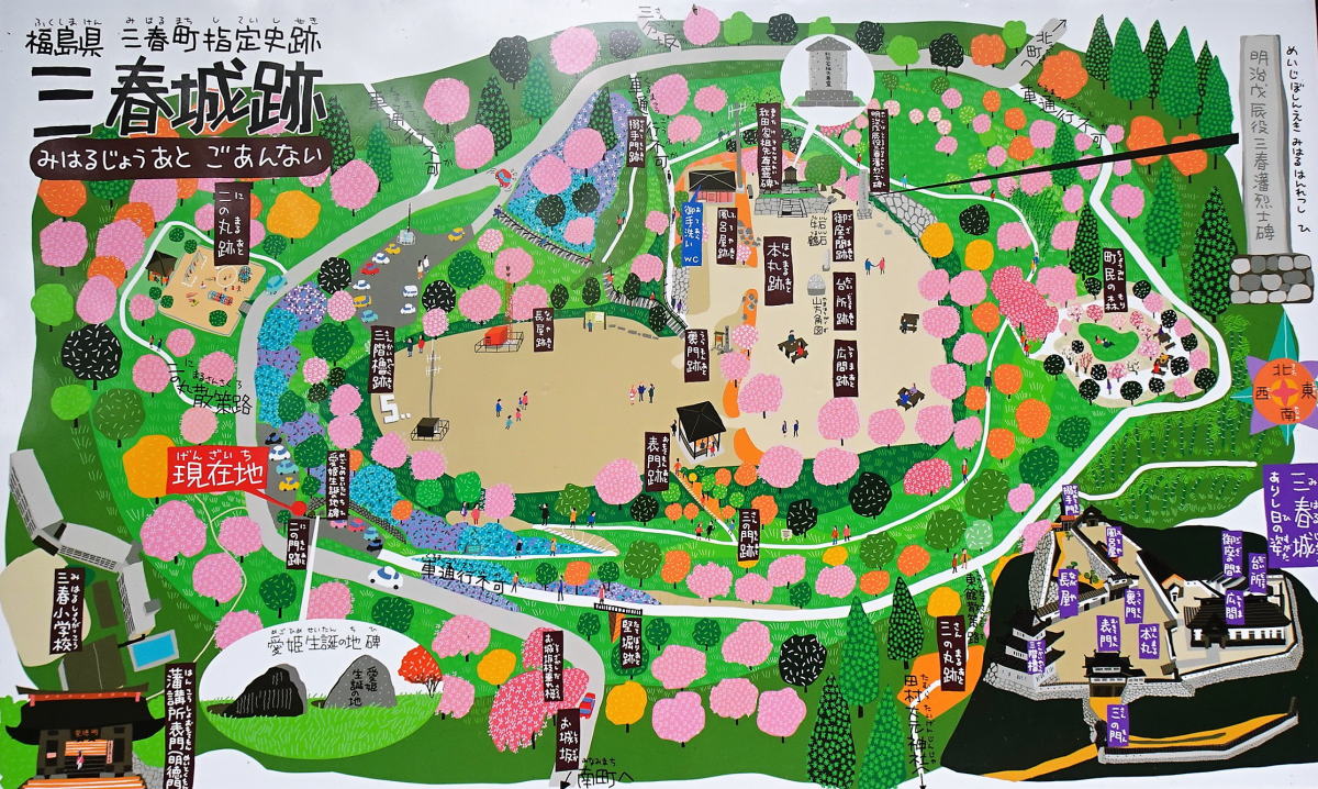 【所在地】福島県田村郡三春町 【地形種類】 山城 【文化財史跡区分】 三春町指定史跡 ※藩講所表門(明徳門)は町指定文化財 ![]() 【アクセス】 JR三春駅にレンタサイクルもありますが、三春駅に着いたのが早かったので、タクシー(料金は1.000円強)で三春城の中腹まで行きました。 帰りは、磐越東線郡山駅行き出発時間の本数が少なかったので、三春町役場前からバスにて郡山駅まで帰りました。周辺案内図は説明板より。 |
