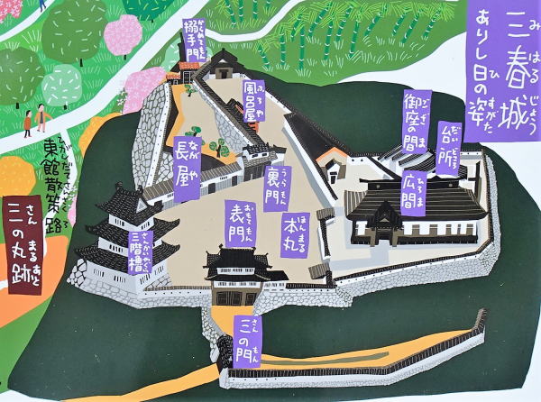 【三春城跡】 三春町史跡 三春城跡は、中世から近世の田村地方を治めた大名の居城跡で、三春町中心部の大志多山にあり、その美しい姿から舞鶴城とも呼ばれました。面積は約200.000uで、麓から約100mの最高所に、標高407.5mの四等三角点があります。このうち、本丸や二の丸、三の丸がある中腹以上の約39.500uを、町の史跡に指定しています。また、(公財)日本城郭協会による「続日本100名城」にも選ばれました。 中世 永正元年(1504)に戦国大名の田村義顕(たむらよしあき)が築いたと伝わっていますが、14世紀の遺物・遺構が発見されることから、遅くとも南北朝時代には城館として機能していたようです。当初は、痩せ尾根に沿って棚田のような狭い平場が並んでいましたが、16世紀初め頃に火災があり、その後行われた大規模な造成工事により、現在のような地形が形成されたようです。田村氏は、義顕、隆顕(たかあき)、清顕(きよあき)と3代続きますが、天正14年(1586)に清顕が急死したため、一人娘の愛姫(めごひめ)の夫である伊達政宗が後見して清顕の甥・宗顕を城主にします。そして、正宗はこの城を足掛かりにして南奥羽を制覇しました。この間、城の周囲にたくさんの堀や土塁、石積みが築かれ、三春城は仙道(中通り)を代表する戦国の城砦となりました。 桃山時代〜江戸時代初期 天正18年(1590)、豊臣秀吉の奥羽仕置きにより田村氏は改易されました。三春は一旦伊達領になりますが、翌年には会津に入った蒲生氏郷(がもううじさと)の領地に組み込まれ、会津若松城の支城のひとつになります。この時代は、蒲生氏の重臣たちが城代を勤め、本丸周囲に石垣を築くなど城と城下町の整備を進めました。なお、上杉景勝が会津藩主だった慶長3年から6年(1598〜1601)前後は、三春城ではなく郡山市田村町の守山城が支城として使われました。そして、寛永4年(1627)に蒲生忠郷(たださと)が没すると、替って会津に入った加藤嘉明(よしあき)の三男・明利(あきとし)、さらに翌年には嘉明の娘の子である松下長綱(ながつな)が3万石の三春城主となります。松下氏は、三春城を近世大名の居城にふさわしい白壁に瓦葺きの城郭へと改変しました。 江戸時代 寛永21年(1644)に松下氏が改易されると、翌年には秋田俊季(としすえ)が5万5千石で三春に入部し、明治維新まで秋田氏11代の居城となりました。秋田氏は、現在小学校(下写真)がある西の麓に御殿(居屋敷)を建設して日常の政務や暮らしの場とし、山上の本丸御殿は儀式の時にだけ使用しました。 ![]() 近現代 戊辰戦争で、三春藩は図らずも奥羽越列藩同盟に加わりますが、新政府軍の攻撃を受ける直前に恭順し無血開城を果たしました。しかし、維新後は建物のみならず石垣や礎石まで払い下げられ、大正になると公園として整備されました。このため、残された一部の石垣と、切岸や天然の要害の地形に、かつての面影を残すだけとなっています。 戦国時代の構成 江戸時代の本丸上の段を本丸、下の段を二の丸とする絵図もありますが、資料が少ないため詳しくはわかりません。本丸から派生する尾根筋を単位として江戸時代の二の丸や三の丸、宝来寺、国道を挟んで北側の月斎館跡(げっさいたてあと・義顕の弟・頼顕の屋敷と伝わる)など独立した防禦ラインが想定できる大きな曲輪群があり、本丸と並び立つ一族や重臣の屋敷跡と推測されます。隆顕の後室・伊達氏の屋敷跡(東館)と伝わる三の丸周辺には、竪堀や土塁、堀切の跡が見られ、東側の町民の森周辺に石積みが残されています。 江戸時代の構成 蒲生氏が石垣を築き、松下氏が主要な施設を建設しますが、秋田氏は西麓に居屋敷を築いて居所とします。本丸の上の段には、君臣が一堂に会する広間と台所、藩主の控え室となる御座間がありました。下の段には、天守に準ずる三階櫓と、両脇に石垣を配した櫓門の表門、多門櫓状の長屋から連なる石垣の上に架した渡櫓門の裏門といった大型の建築物が平場の縁を巡るように建てられ、城下からは豪壮な城を仰ぎ見ることができたと推測されます。そして、天明5年(1785)の大火で表門を除いてほぼ全焼すると、本丸には代々の将軍から頂いた朱印状を納めた三階櫓のほかは再建されないまま、明治維新を迎えました。(文は現地説明板より) |
