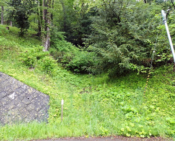 ![]() お城坂 突き当たりには、竪堀跡があります。 |
