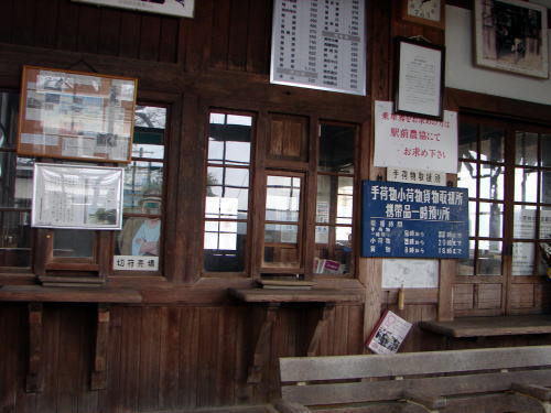 ![]() 窓口カウンターなど駅舎内部はほとんど手が加えられておらず、旧状をよくとどめている。現行駅のため、事務室内以外は見学可 |
