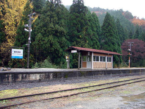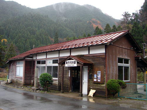 ![]() JR因美線美作河井駅(津山市加茂町山下) 因美線の中では最高所(標高335m)にある緑あふれる山中に佇む駅。平成19年4月に構内から発掘され、2年後には近代産業遺産に登録された手動転車台が名物 |
